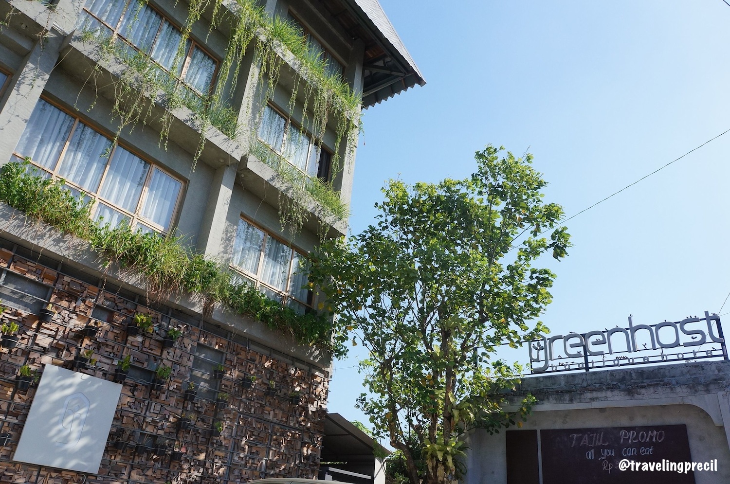 Sesuai namanya, hotel GreenHost ini benar-benar green, hijauuuuuu di mana-mana. Tampak depannya dihiasi dengan tanaman rambat dan pot-pot kecil, jadi gampang dibedakan dari bangunan sekitarnya. Hotel ini nylempit di jalan Prawirotaman 2 No. 629. Kalau dilihat di Google Map, nama jalannya Jl Gerilya, satu blok dari jalan Prawirotaman dan Jl Tirtodipuran. Hotel ini juga berada di jalan yang sama dengan hotel Gallery Prawirotaman yang lebih besar dan sudah lebih populer.